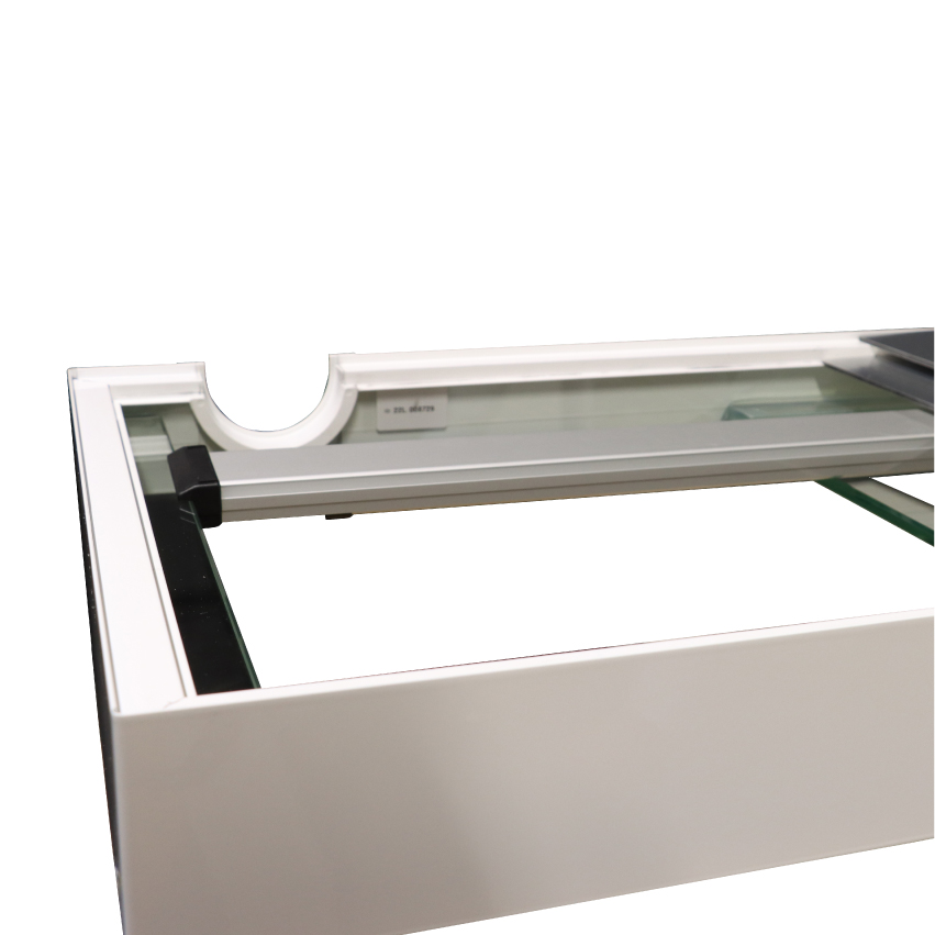 Die Aquarien werden von einer 40 mm hohen aus einem Stück bestehenden Kiesblende aus eloxiertem und lackierten Aluminium elegant umschlossen. Dadurch kann bei der Aufstellung des Aquariums auf eine Unterlegmatte verzichtet werden.