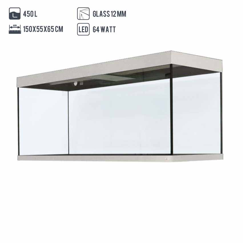 150 x 55 x 65* cm / Glasstärke 10 mm / 450 Liter netto