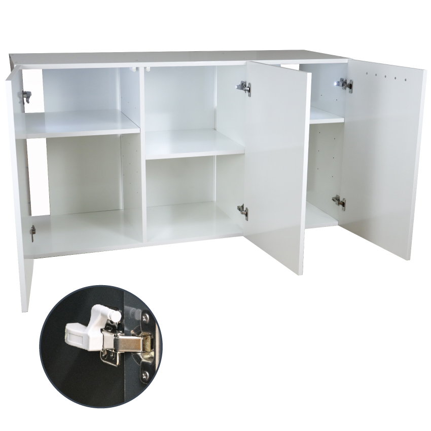 Der Aquarienunterschrank wird als Bausatz komplett mit Aufbauzubehör geliefert. Die beschichteten Spanplatten werden in Hochglanz weiß oder grau geliefert und sind farblich identisch mit der Abdeckleuchte. Alle Bauteile inclusive der Türen und Ablagebretter werden in 19 mm Stärke extrastabil gefertigt. Die Türen sind mit professionellen Scharnieren aus dem gehobenen Küchenbau mit Push & Pull Öffnung ausgestattet. Die Schränke sind für jede Tür mit Drucksensoren und Beleuchtung zur vollständigen Ausleuchtung des Schrankinneren ausgestattet. In den Seitenfächern können die beigelegten Einlegeböden höhenverstellbar angebracht werden. Der Einlegeboden in der Mitte ist bei den Modellen Alux 330 und 450 fest verbaut. Die Rückwand besteht aus stabilen 19 mm starken Brettern in Schrankfarbe und bieten Platz für den bequemen Einbau incl. Verrohrung aller gängigen Aussenfilter etc.